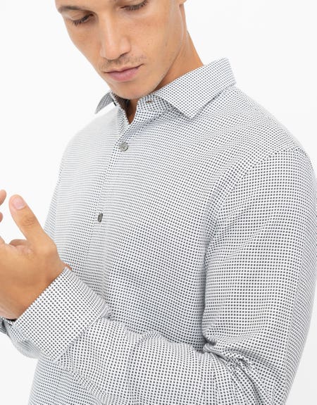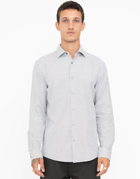 Grid Pattern Dress Shirt in White
